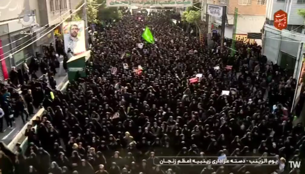 حضور با صلابت و اقتدار بانوان زنجانی در دسته عزاداری زینبیه اعظم زنجان بیانیه خانواده های شهدای جنگ با رژیم صهیونی در دسته عظیم عزاداران…